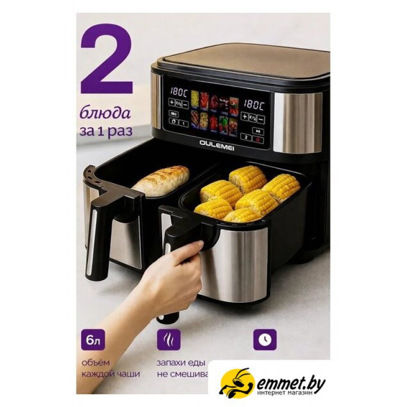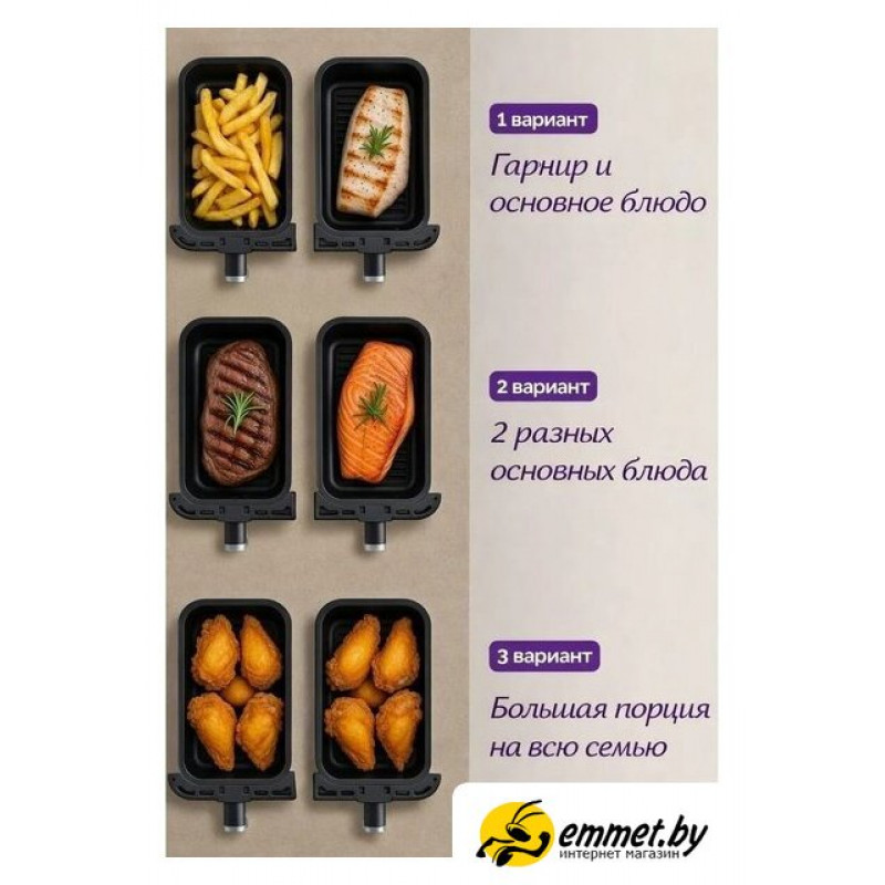 | Комплект поставки | Инструкция на русском языке - 1шт.; Аэрогриль - 1шт.; книга рецептов по QR коду - 1шт.; решетка - 2шт. |