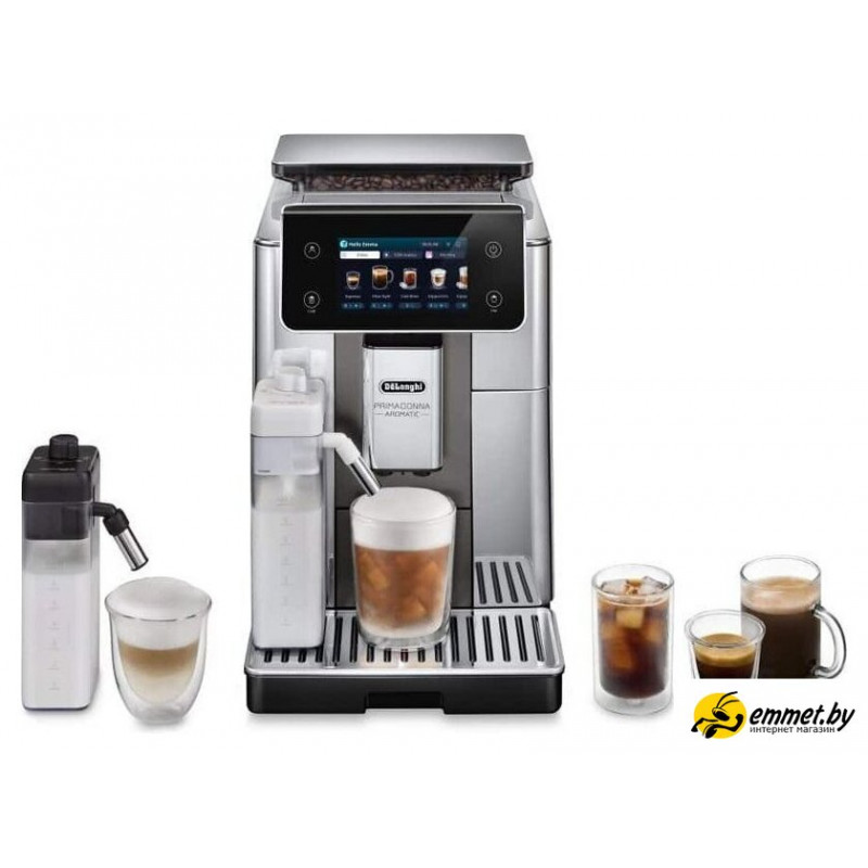 1450 Вт, корпус металл/пластик, капучинатор автоматический, используемый кофе: молотый/зерновой, цвет серебристый