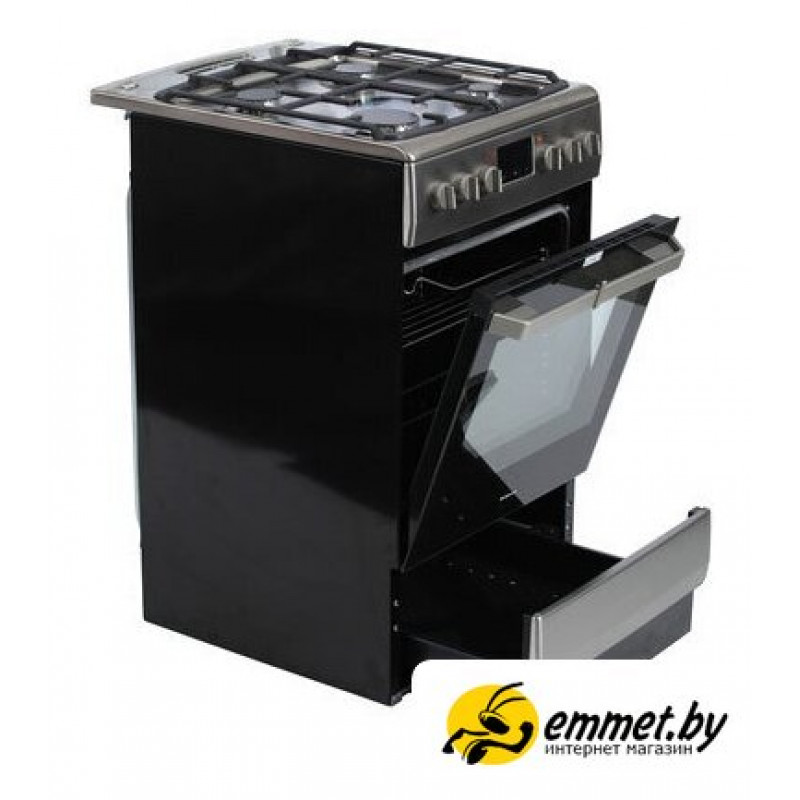 газовая панель + электрический духовой шкаф, газ-контроль конфорок, поверхность: нержавеющая сталь, крышка из закалённого стекла, энергопотребление A-20%, управление электронное, таймер электронный, размеры (ШхГхВ): 50x60x85 см