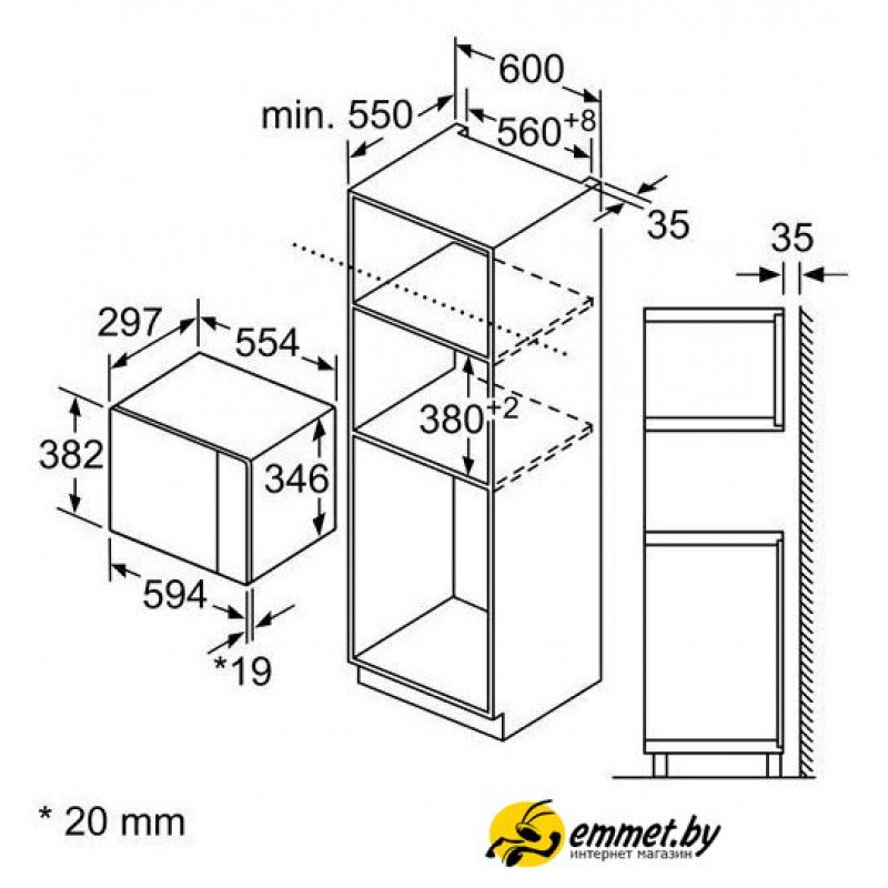 встраиваемая, микроволны (соло), объем 20 л, выходная мощность микроволн 800 Вт, управление электронное, автоприготовление, авторазмораживание, цвет черный