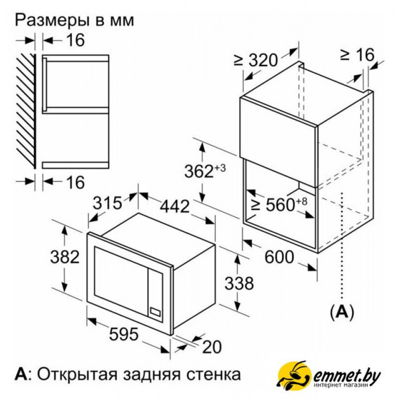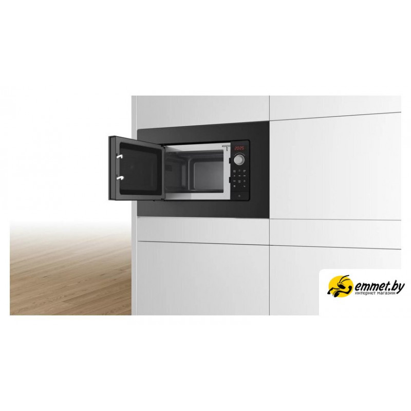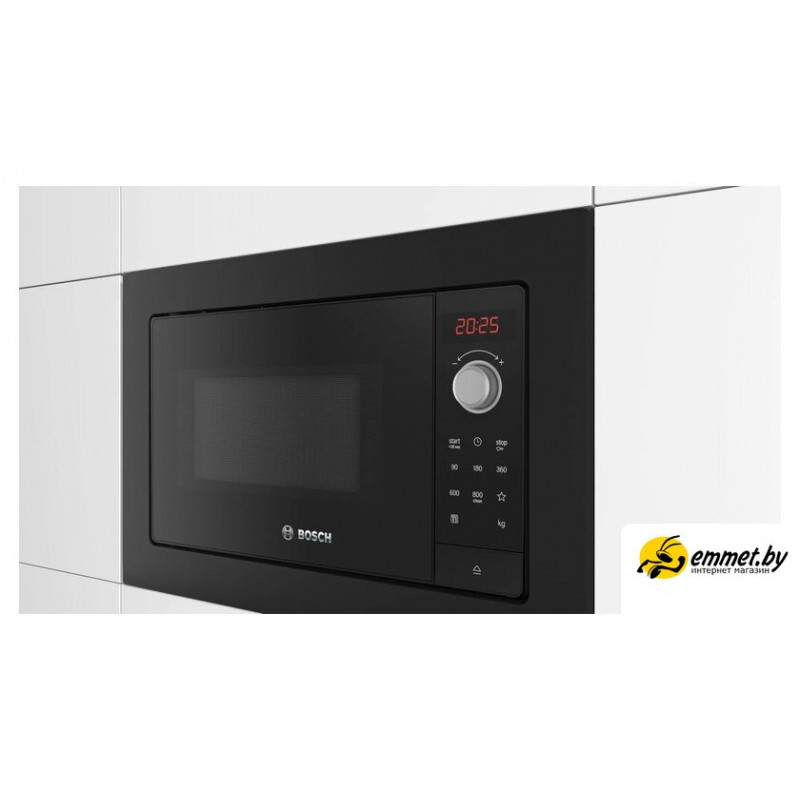 встраиваемая, микроволны (соло), объем 20 л, выходная мощность микроволн 800 Вт, управление электронное, автоприготовление, авторазмораживание, цвет черный