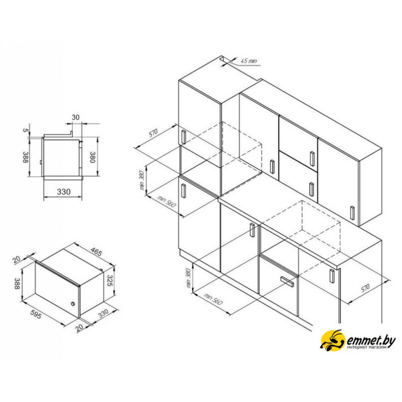 встраиваемая, микроволны и гриль, объем 20 л, выходная мощность микроволн 800 Вт, управление электронное, автоприготовление, авторазмораживание, цвет черный