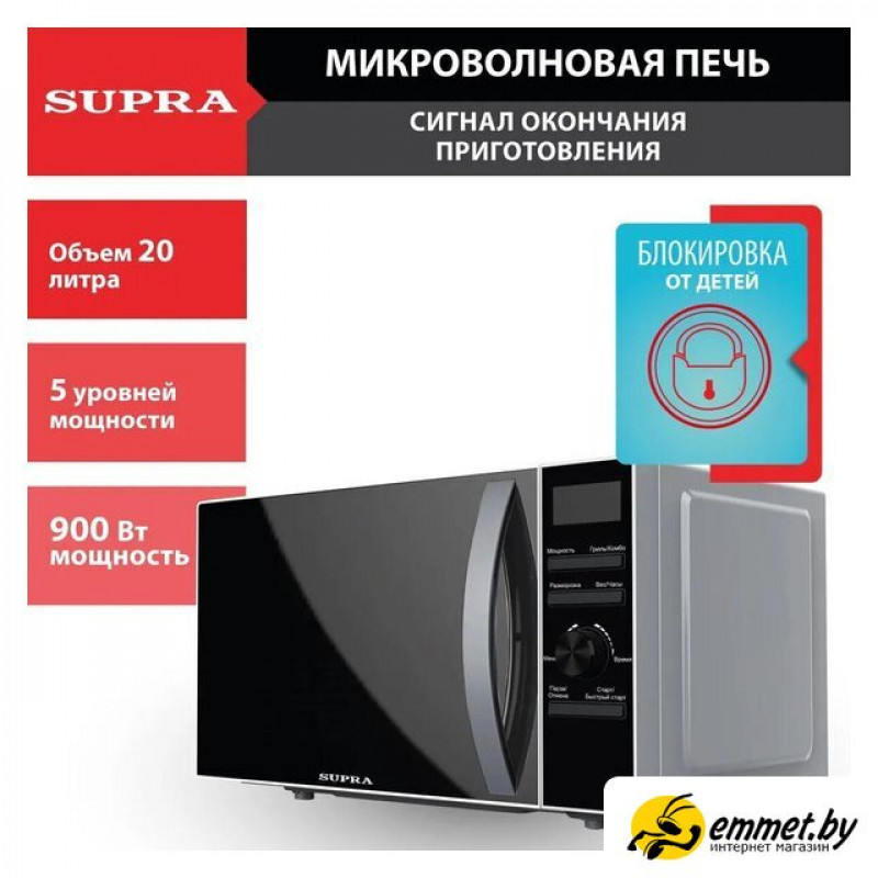 отдельностоящая, микроволны и гриль, объем 20 л, выходная мощность микроволн 700 Вт, управление электронное, автоприготовление, авторазмораживание, цвет серебристый/черный