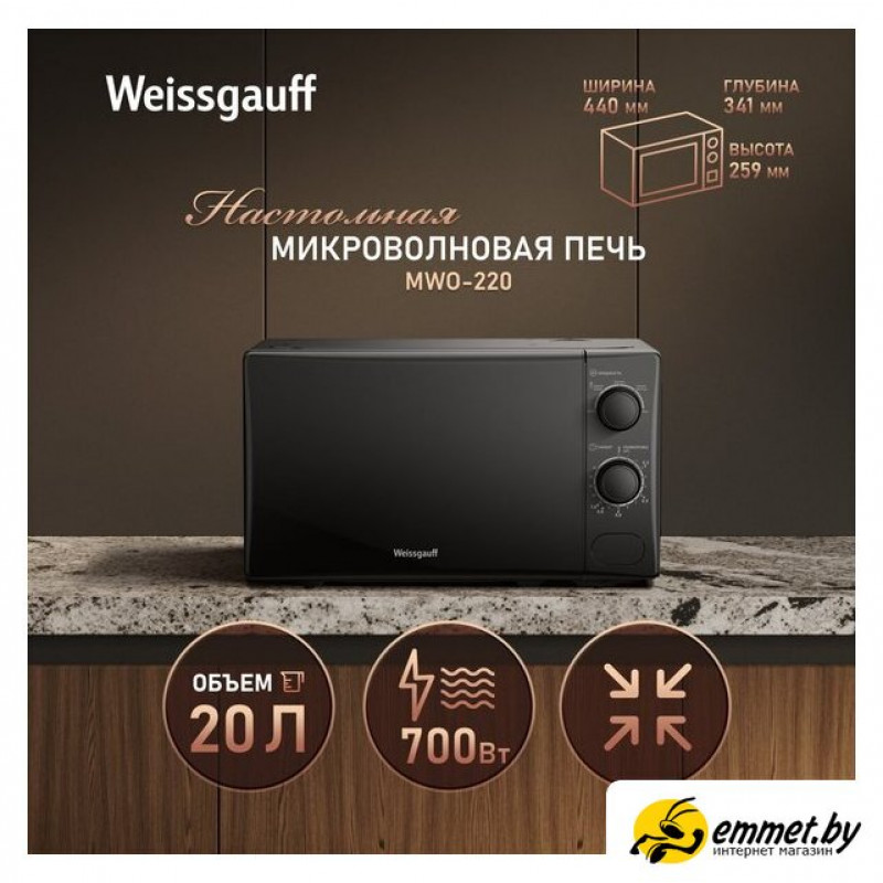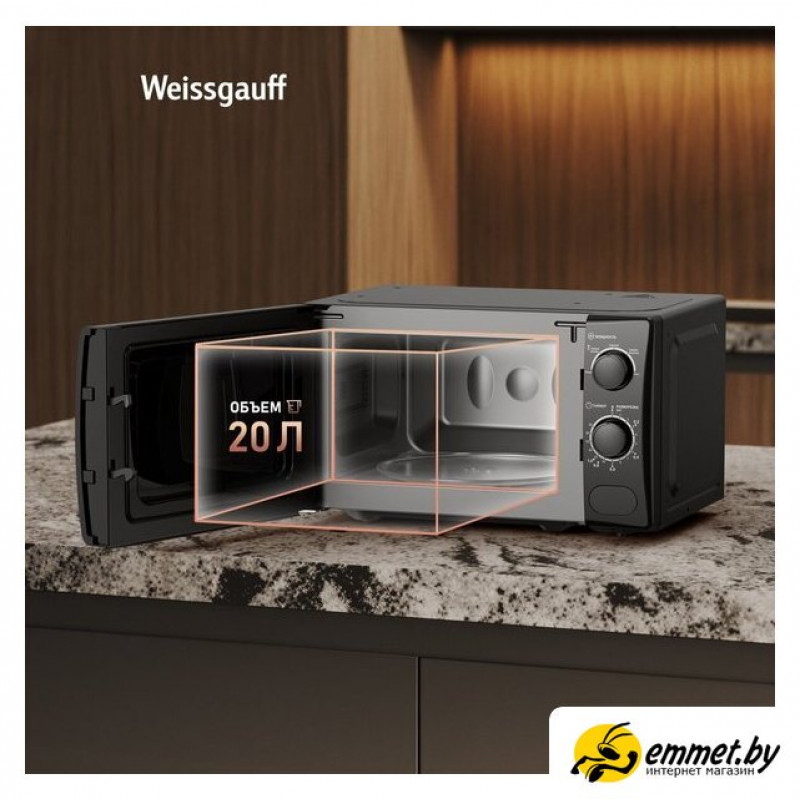 отдельностоящая, микроволны (соло), объем 20 л, выходная мощность микроволн 700 Вт, управление механическое, цвет черный