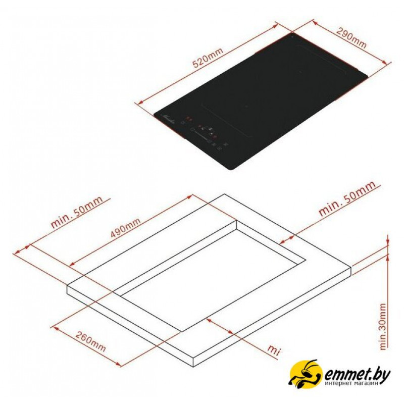 индукционная на 2 конфорки, cтеклокерамика, мощность: 3500 Вт, независимая установка, размеры (ШхГ): 29x52 см
