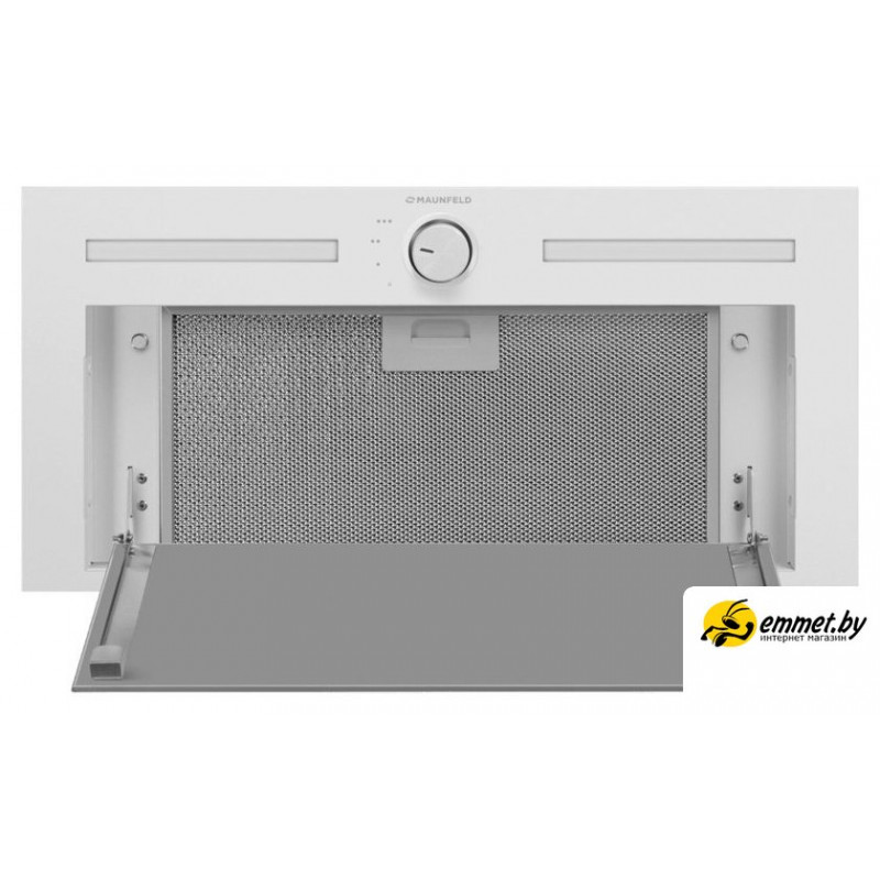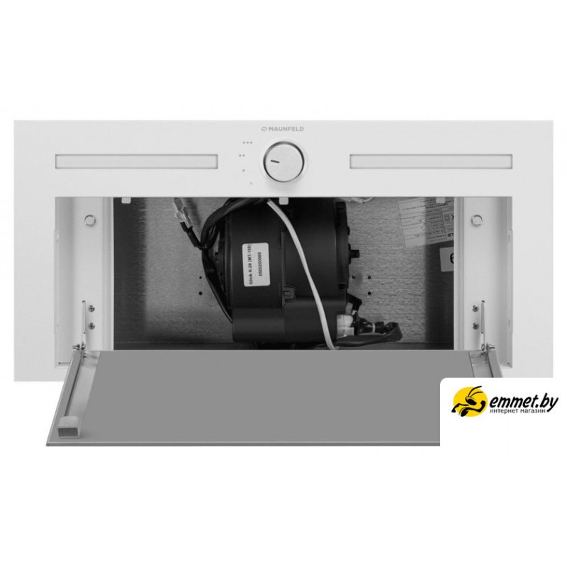 конструкция скрытая, монтаж для встраивания, ширина 59.8 см, управление механическое/поворотный переключатель, производительность мотора 1000 м³/ч, цвет белый