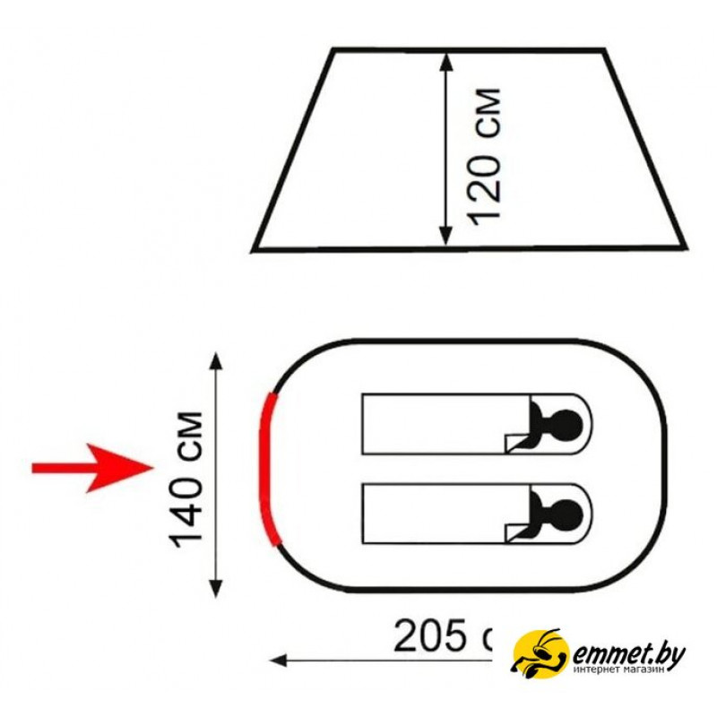 треккинговая, весна/лето/осень, 2-местная, 1 вход, 1 комната, противомоскитная сетка, штормовые оттяжки, ДхШхВ: 205x140x120 см