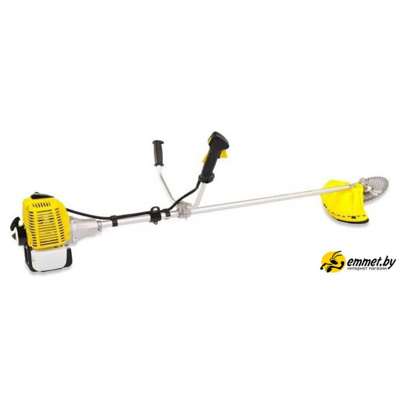Комплектация - Двигатель с рукояткой управления- Рукоятка рабочая- Ремень подвесной- Кожух защитный с фартуком в сборе- Ключ комбинированный- Ключ шестигранный 4 мм- Ключ шестигранный 5 мм- Штанга триммера- Емкость для топливной смеси- Хомут пластиковый 2 шт.- Винты крепления двигателя 4 шт.- Нож- Головка триммерная- Руководство по эксплуатации