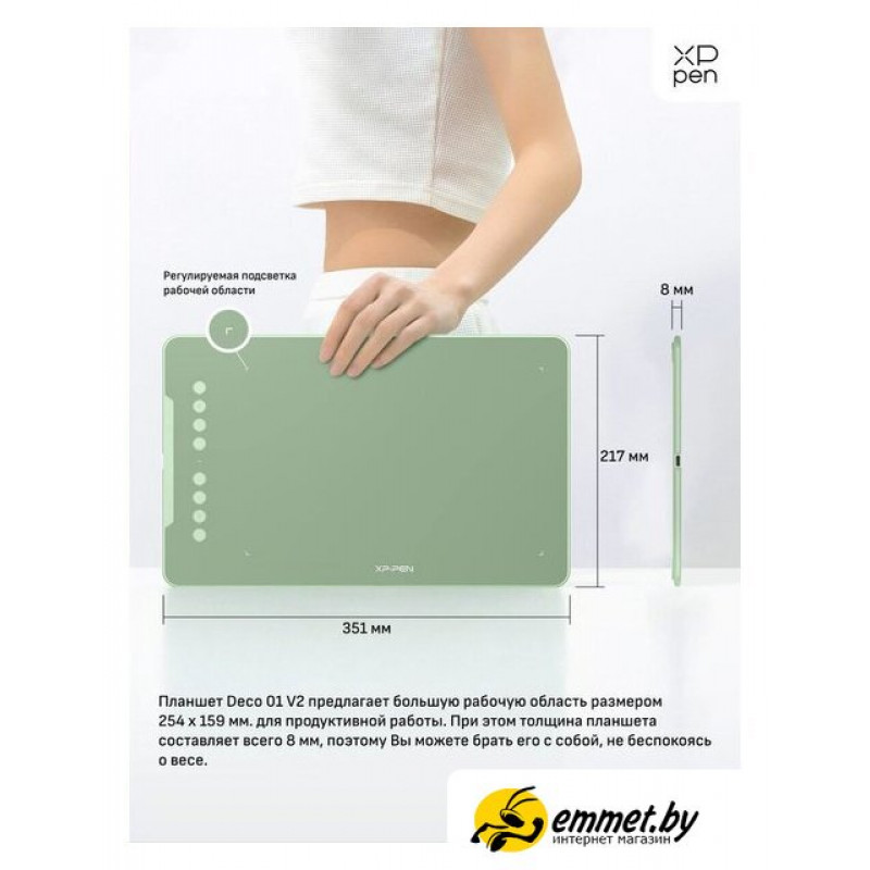 | Комплект поставки | - планшет;- перо с подставкой и 8-ю сменными наконечниками;- перчатка;- защитная пленка;- USB кабель;- адаптер USB - USB type-C;- адаптер USB - microUSB;- документация; |