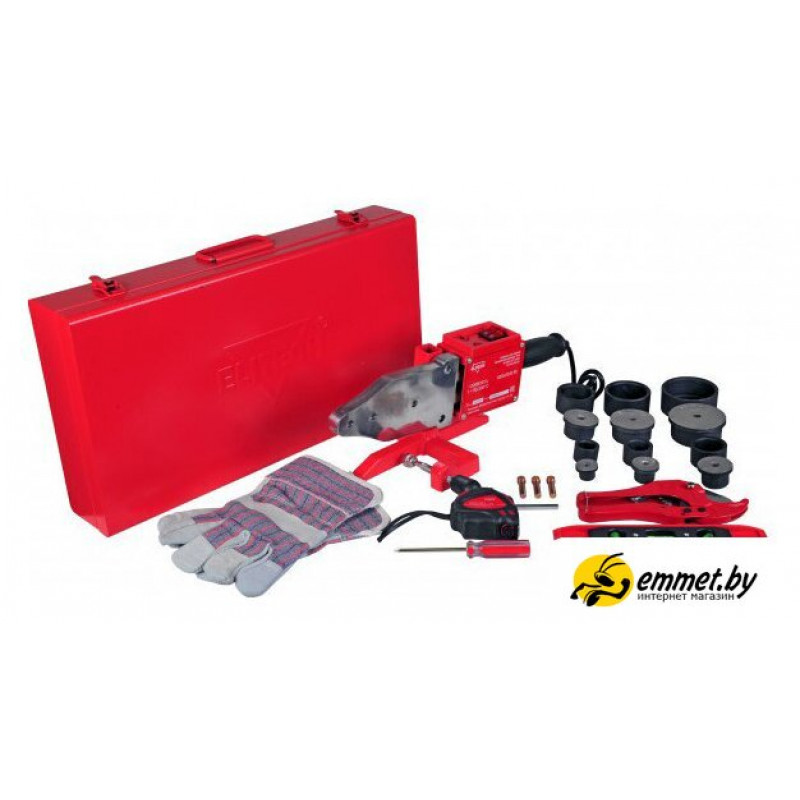 Комплектация - Аппарат для сварки труб.- Металлический кейс.- Подставка.- Насадки комплект 20,25,32,40,50,63 мм.- Ключ шестигранный.- Отвертка.- Болт (2шт).- Ножницы для резки труб.- Рулетка.- Уровень.- Перчатки (пара).- Руководство по эксплуатации.