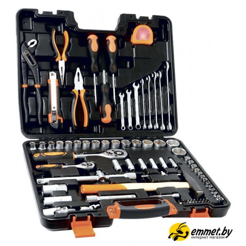 | Комплектация | Головки торцевые 1/4: 4, 4.5, 5, 5.5, 6, 7, 8, 9, 10, 11,12 ,13 мм — 12 шт.Головки торцевые удлиненные 1/4:8, 9, 10, 11, 12, 13 мм — 6 шт.Головки торцевые 1/2: 10, 11, 12, 13, 14, 15, 16, 17, 18, 19, 21, 22, 24, 27, 30,32 мм — 16 шт.Удлинитель 1/4: 76 мм — 1 шт.Удлинитель 1/2: 125, 250 мм — 2 шт.Держатель бит 1/4: 150 мм — 1 шт.Головки свечные 1/2: 16, 21 мм — 2 шт.Трещотка: 1/4, 1/2 — 2 шт.Шарнир карданный: 1/4, 1/2 — 2 шт.Отвертка РН:6х100 мм — 1 шт.Отвертка SL: 6х100 мм — 1 шт.Биты в держателе — 20 шт.Длинногубцы: 150 мм — 1 шт.Плоскогубцы: 180 мм — 1 шт.Клещи переставные: 240 мм — 1 шт.Нож строительный — 1 шт.Рулетка измерительная 3 м — 1 шт.Молоток 300 г — 1 шт.Ключи комбинированные: 6, 8, 10, 11, 12, 13, 14, 17 м — 8 шт.Вороток: 1/4, 1/2 — 2 шт.Адаптер для бит 1/4 — 1 шт. |