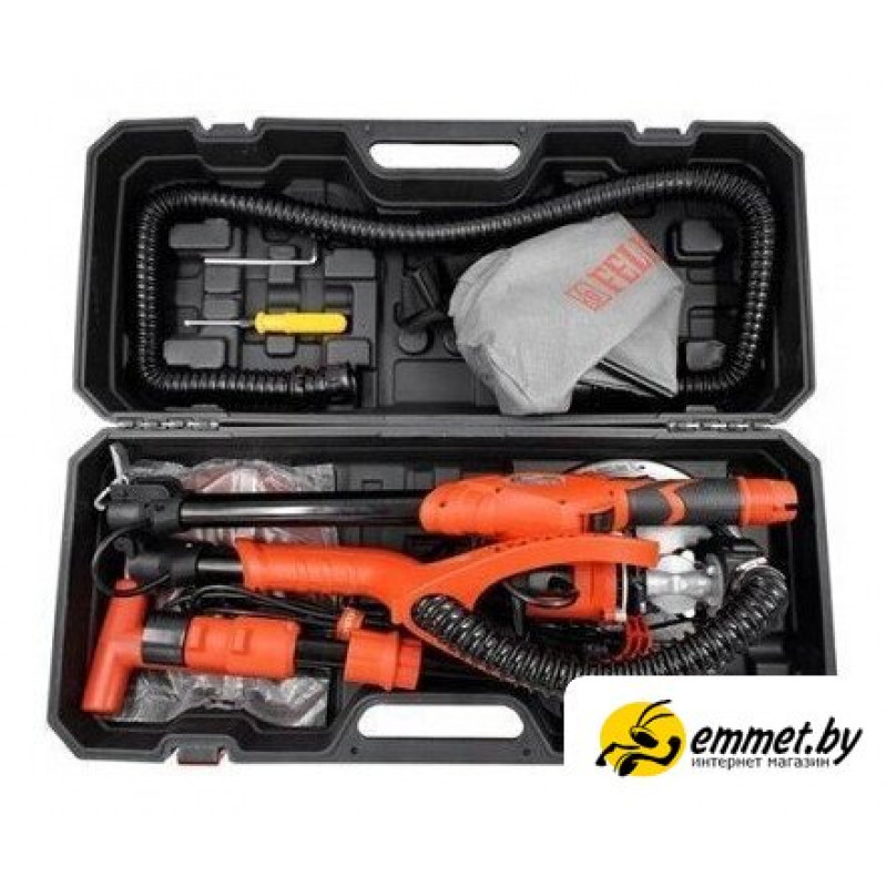 | Комплект поставки | - Машина ручная электрическая шлифовальная- Руководство по эксплуатации и Инструкция по безопасности- Гарантийный талон- Обоснование безопасности- Мешок для сбора пыли- Рукоятка телескопическая- Шланг- Переходник под шланг- Ключ специальный- Упаковка |
