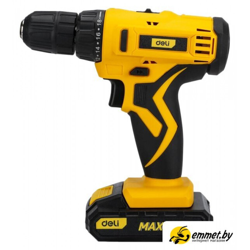 | Комплектация | - Дрель-шуруповерт - Аккумулятор с индикатором заряда - 2 шт- Зарядное устройство- Инструкция/гарантийный талон- Кейс |