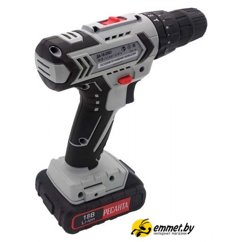 дрель-шуруповерт, аккумулятор 18V, Li-ion, патрон быстрозажимной, 2 скорости, режимы: сверление/сверление с ударом/шуруповерт