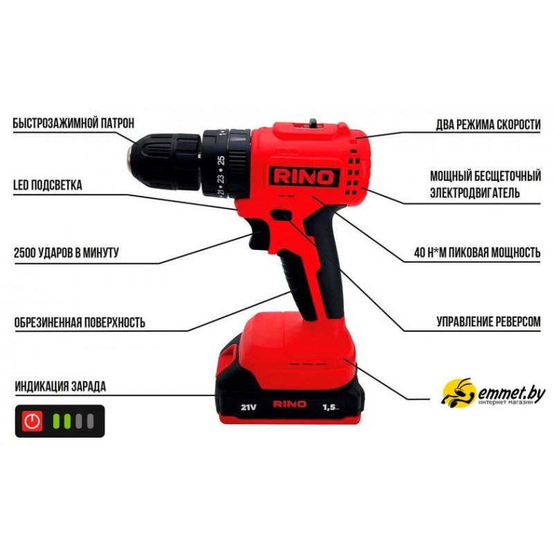 | Комплектация | - Дрель- Зарядное устройство- Аккумулятор- Руководство пользователя |