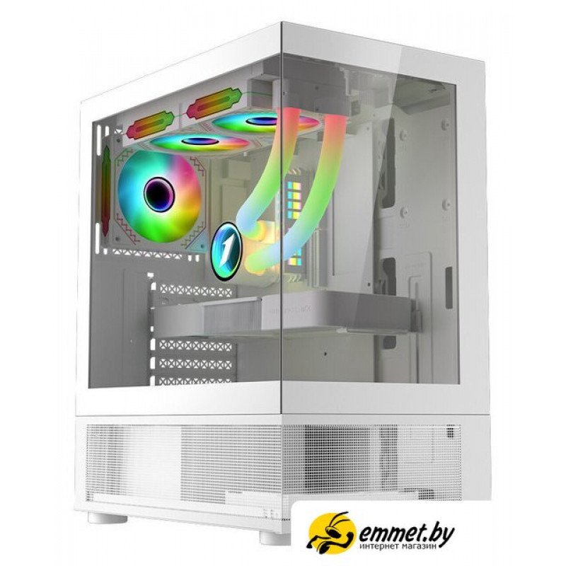 Mid Tower, БП отсутствует, для плат ATX/micro-ATX/mini-ITX, в комплекте 3 вентилятора, окно: закаленное стекло, видеокарта до 360 мм, охлаждение ЦП до 185 мм, 1xUSB 2.0, 1xUSB-A 3.2 5Гбит/с, цвет белый
