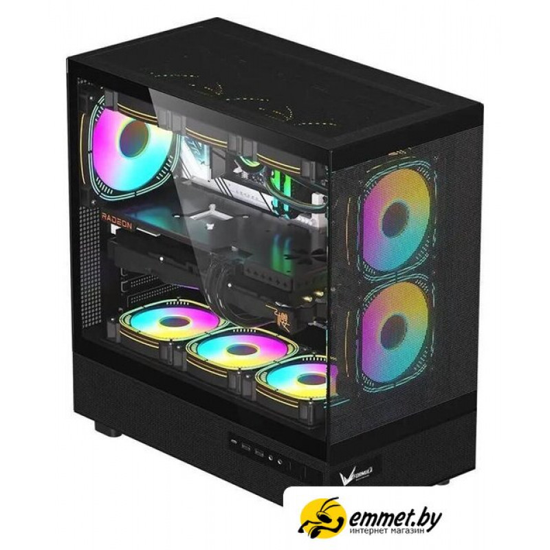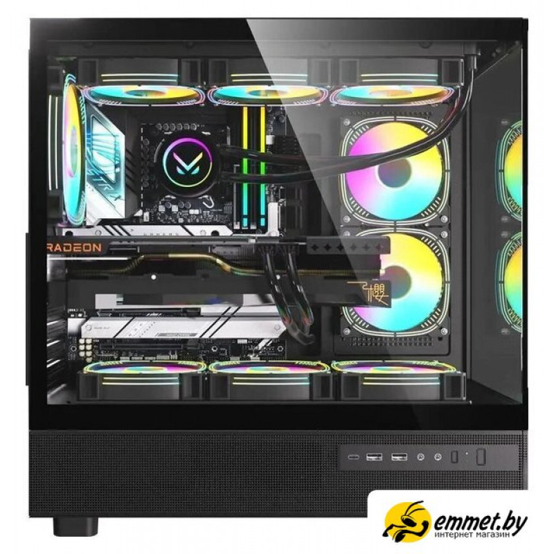 аквариум/Mid Tower, для плат ATX/micro-ATX/mini-ITX, окно: закаленное стекло, видеокарта до 395 мм, охлаждение ЦП до 185 мм, пылевые фильтры, 2xUSB-A 3.2 5Гбит/с, 1xUSB-C 3.2 5Гбит/с, цвет черный