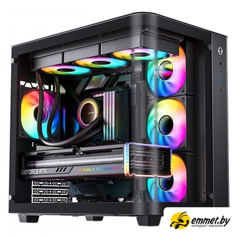аквариум/Mid Tower, БП отсутствует, для плат ATX/micro-ATX/mini-ITX, окно: закаленное стекло, видеокарта до 420 мм, охлаждение ЦП до 165 мм, пылевые фильтры, 2xUSB-A 3.2 5Гбит/с, 1xUSB-C 3.2 10Гбит/с, цвет черный