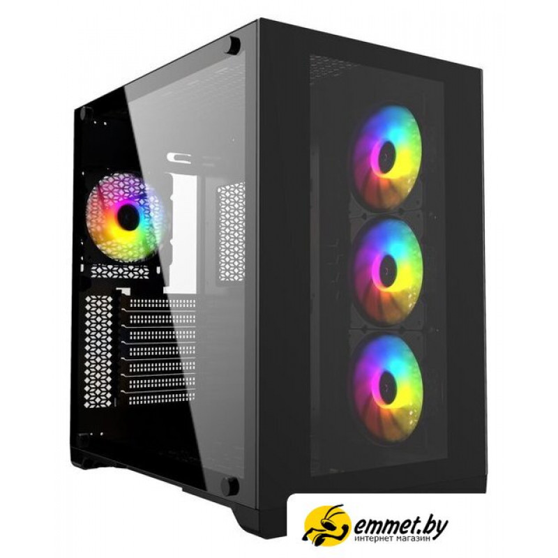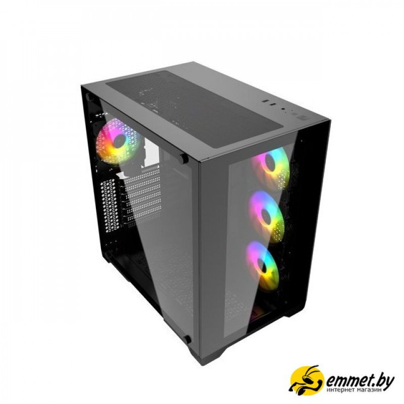 Mid Tower, БП отсутствует, для плат ATX/micro-ATX/mini-ITX, в комплекте 4 вентилятора, окно: закаленное стекло, видеокарта до 380 мм, охлаждение ЦП до 163 мм, пылевые фильтры, 1xUSB-A 3.2 5Гбит/с, 1xUSB-C 3.2 10Гбит/с, цвет черный