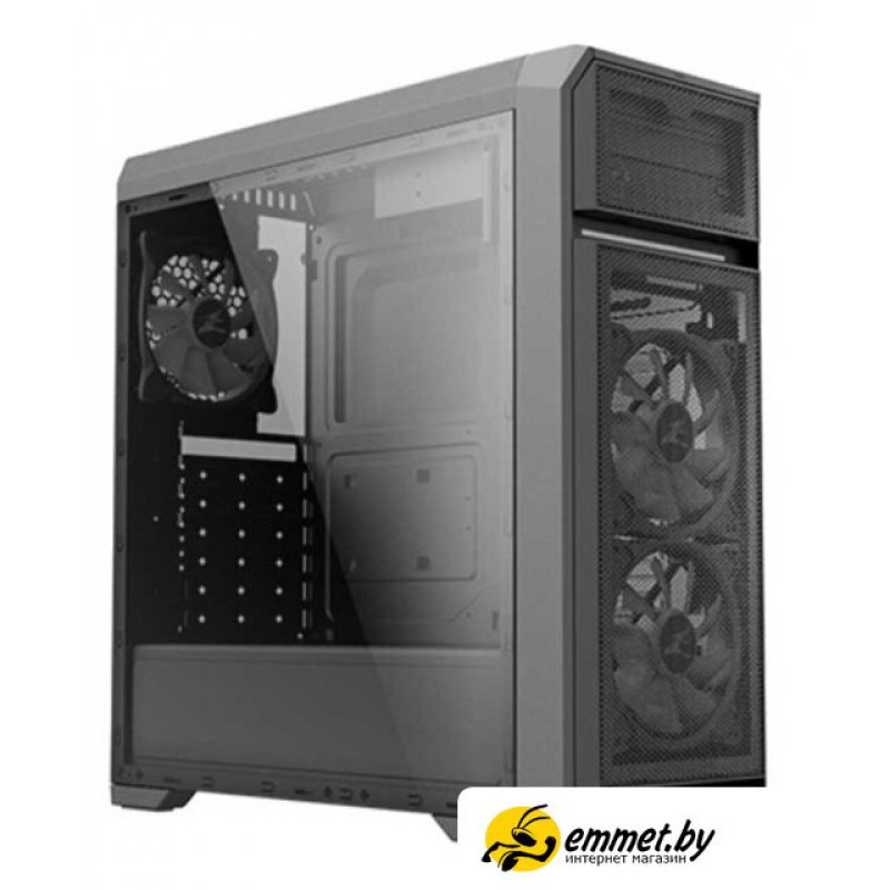 Midi Tower, блок питания отсутствует, для плат ATX/micro-ATX/mini-ITX, 3 вентилятора с контроллером вращения, 2xUSB 2.0, 1xUSB 3.0, цвет черный/серебристый