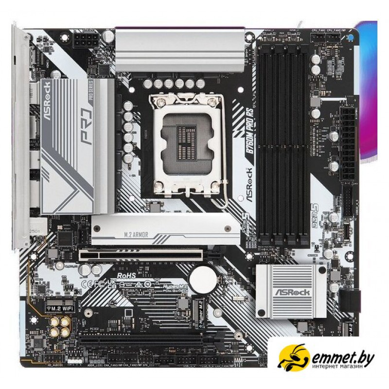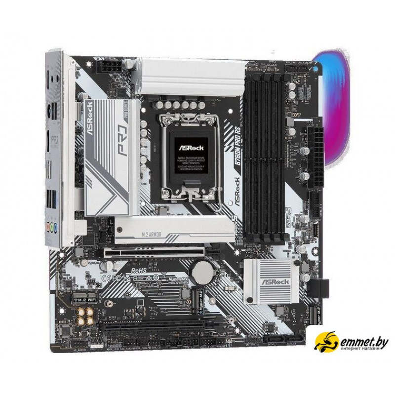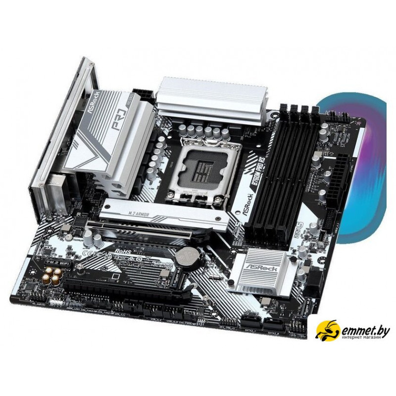 mATX, сокет Intel LGA1700, чипсет Intel B760, память 4xDDR5 до 7200 МГц, слоты: 2xPCIe x16 5.0, 1xPCIe x1, 3xM.2, 7+1+1 фаз питания