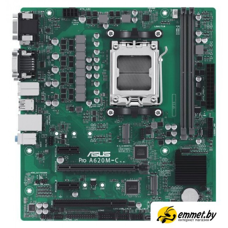 mATX, сокет AMD AM5, чипсет AMD A620, память 2xDDR5 до 8000 МГц, слоты: 1xPCIe x16 4.0, 2xPCIe x1, 1xPCI, 2xM.2