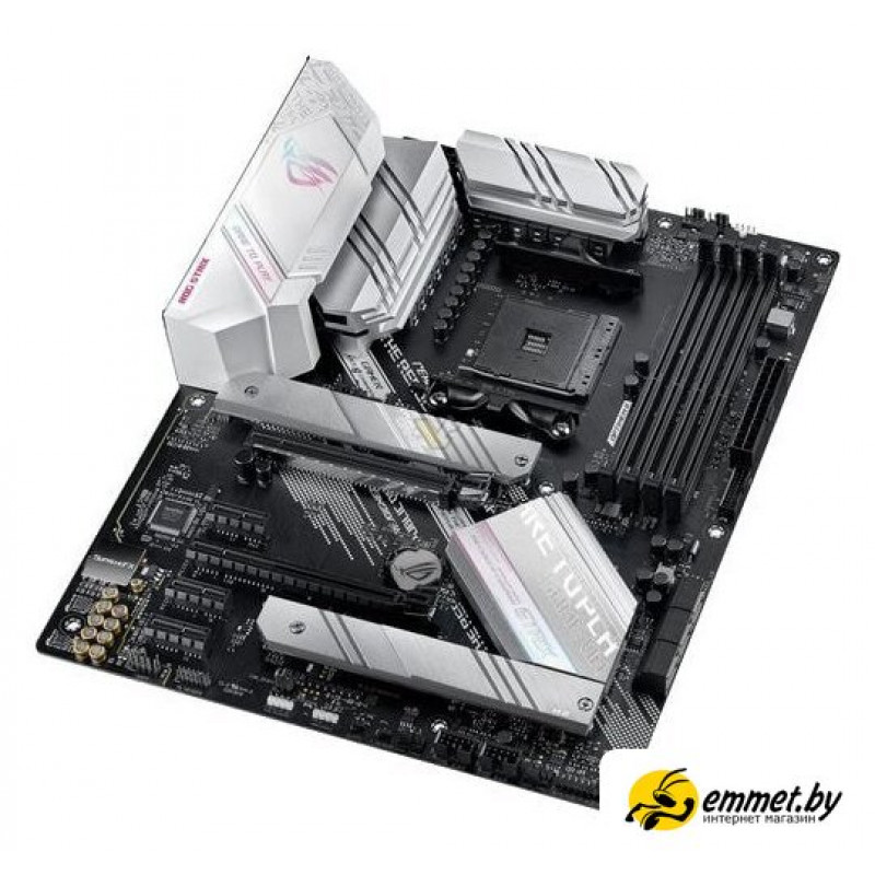 ATX, сокет AMD AM4, чипсет AMD B550, память 4xDDR4 до 5100 МГц, слоты: 2xPCIe x16 4.0, 3xPCIe x1, 2xM.2, 12+2 фаз питания