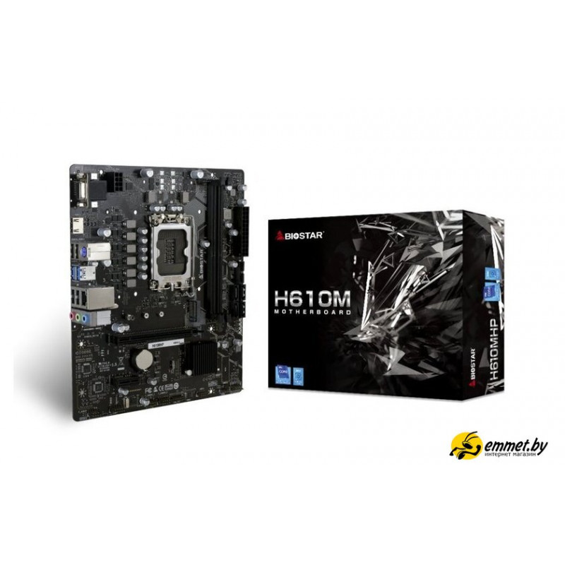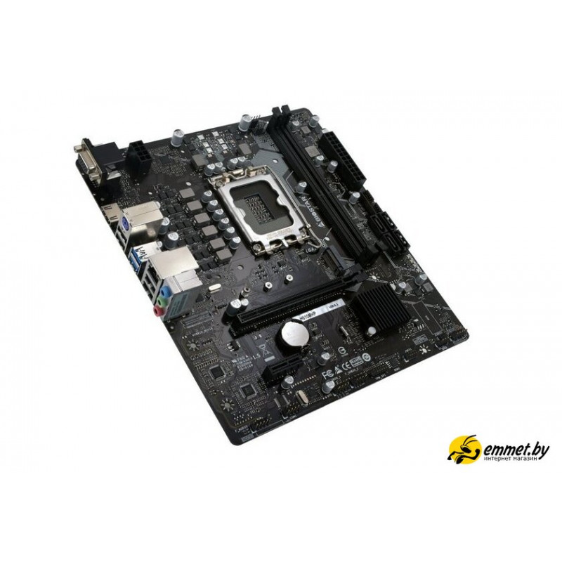 mATX, сокет Intel LGA1700, чипсет Intel H610, память 2xDDR4 до 3200 МГц, слоты: 1xPCIe x16 4.0, 1xPCIe x1, 1xM.2