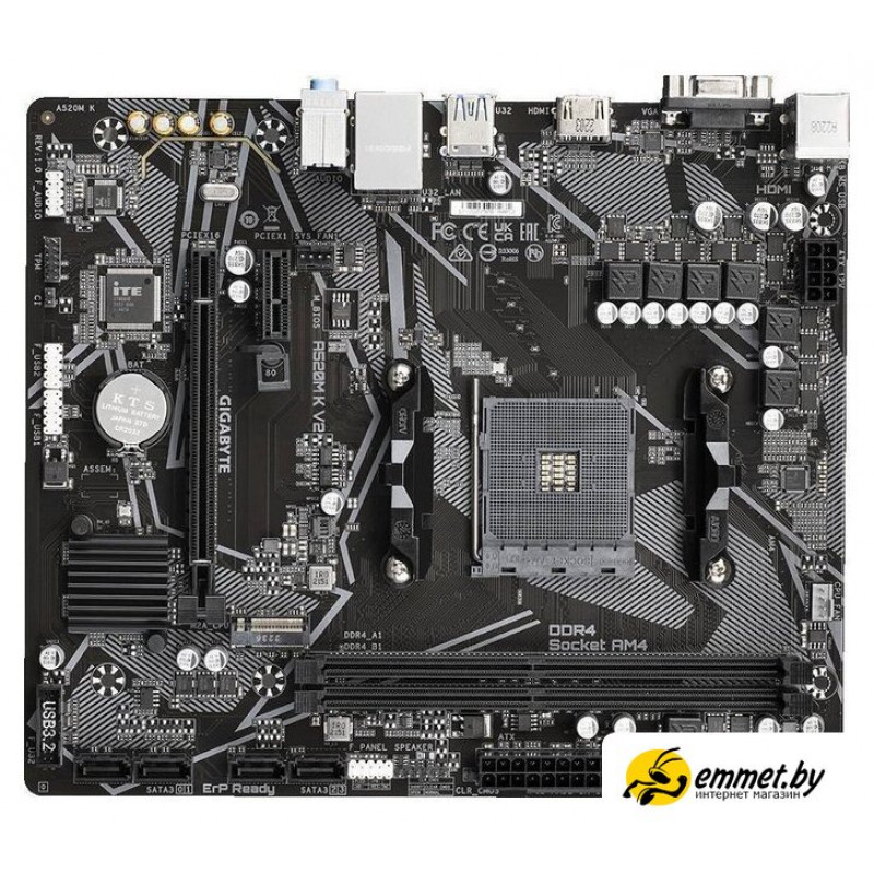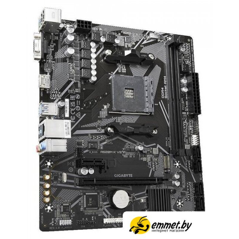 mATX, сокет AMD AM4, чипсет AMD A520, память 2xDDR4 до 5100 МГц, слоты: 1xPCIe x16 3.0, 1xPCIe x1, 1xM.2