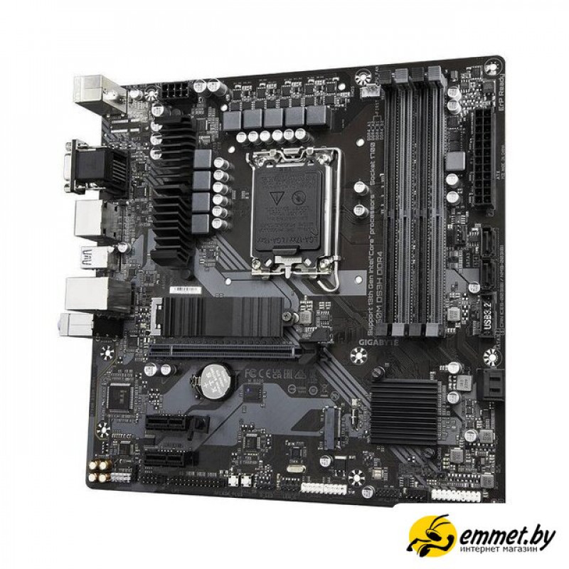 mATX, сокет Intel LGA1700, чипсет Intel B760, память 4xDDR4 до 5333 МГц, слоты: 1xPCIe x16 4.0, 2xPCIe x1, 2xM.2, 6+2+1 фаз питания