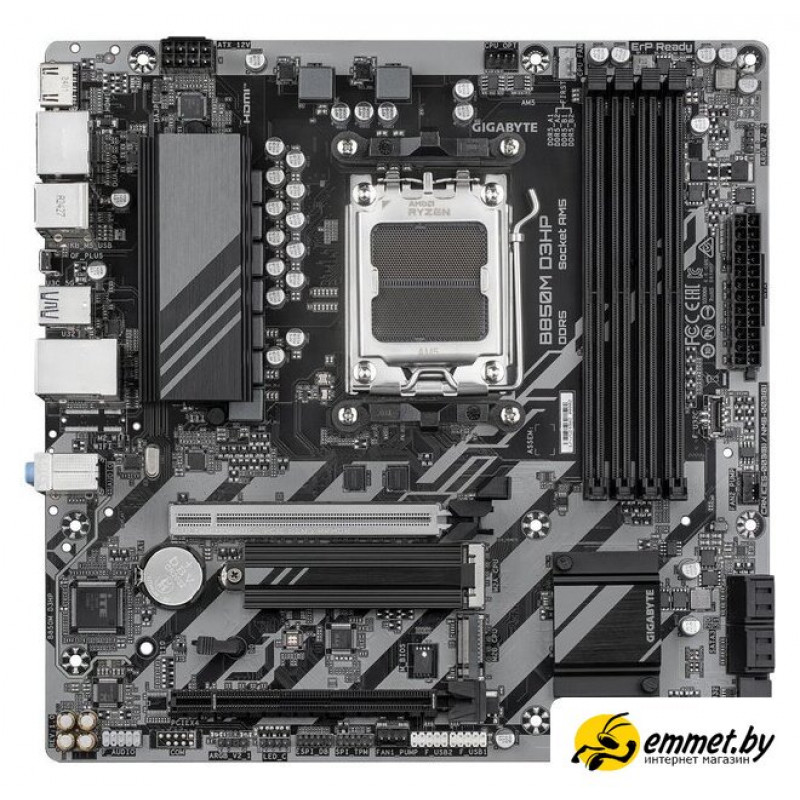 mATX, сокет AMD AM5, чипсет AMD B850, память 4xDDR5 до 8200 МГц, слоты: 2xPCIe x16 5.0, 2xM.2, 5+2+2 фаз питания