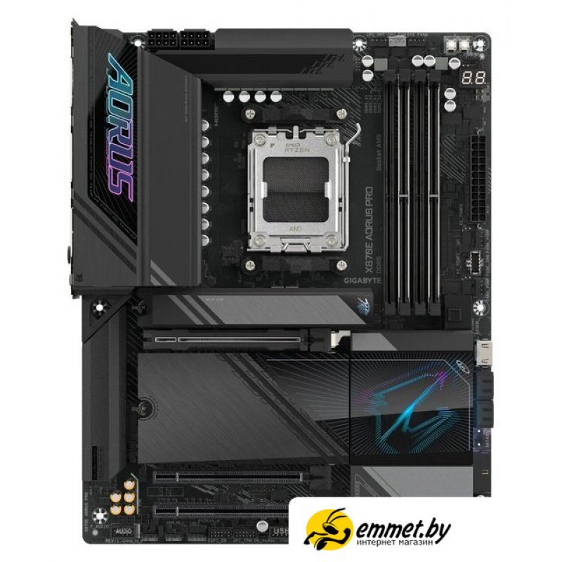 ATX, сокет AMD AM5, чипсет AMD X870E, память 4xDDR5 до 8200 МГц, слоты: 3xPCIe x16 5.0, 4xM.2, 802.11be (Wi-Fi 7)+Bluetooth 5.3, 16+2+2 фаз питания