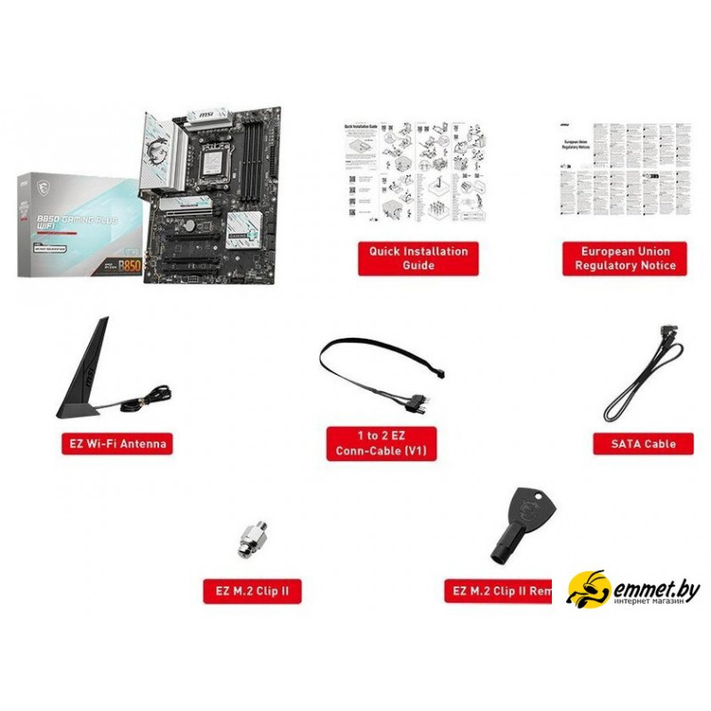 | Комплектация | - кабель SATA- Wi-Fi антенна - 1-2 EZ кабель - винт EZ M.2 Clip II- EZ M.2 Clip II экстрактор- документация |