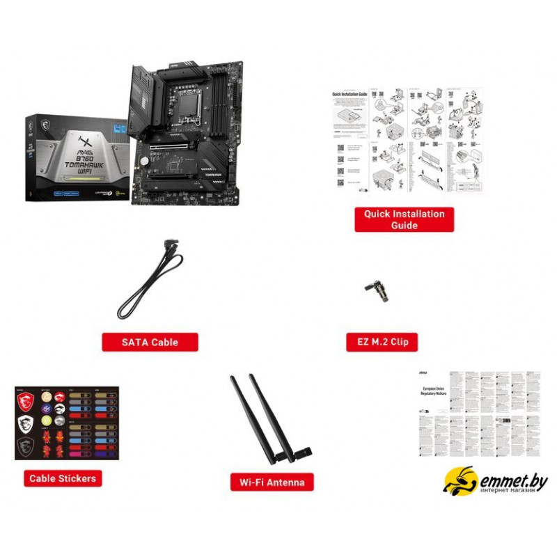 ATX, сокет Intel LGA1700, чипсет Intel B760, память 4xDDR5, слоты: 2xPCIe x16, 1xPCIe x1, 3xM.2