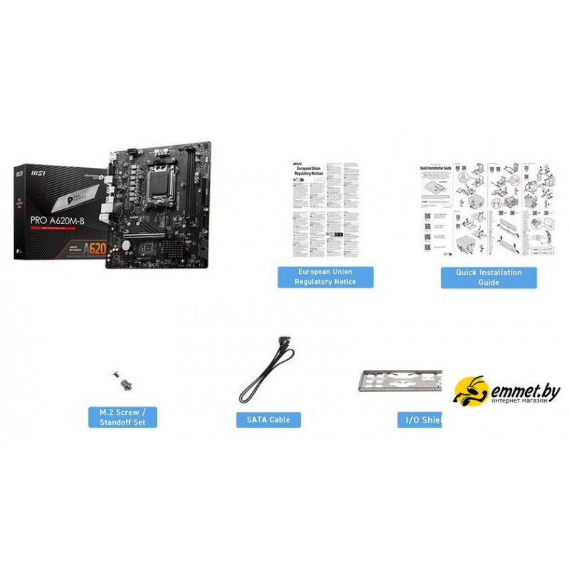 mATX, чипсет AMD A620, память 2xDDR5 до 6800 МГц, слоты: 1xPCIe x16 4.0, 1xPCIe x1, 1xM.2, 2+1+1 фаз питания