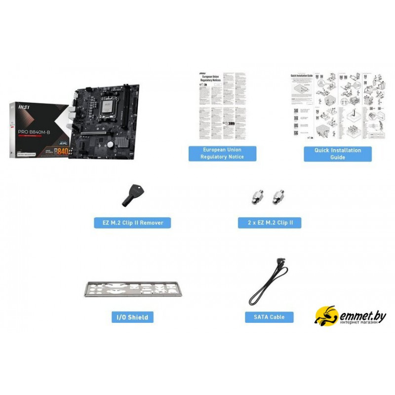 | Комплектация | - кабель SATA- EZ M.2 Clip II экстрактор- 2 винта EZ M.2 Clip II- I/O планка - документация |