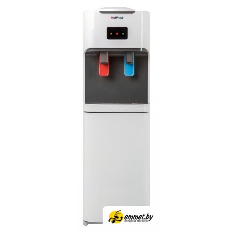 напольный, компрессорное охлаждение, нагрев, бутыль сверху, кран: нажим кружкой, встроенный холодильник