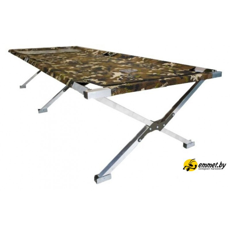 раскладушка, сталь, максимальная нагрузка 150 кг, чехол, ручка для переноски, зеленый цвет