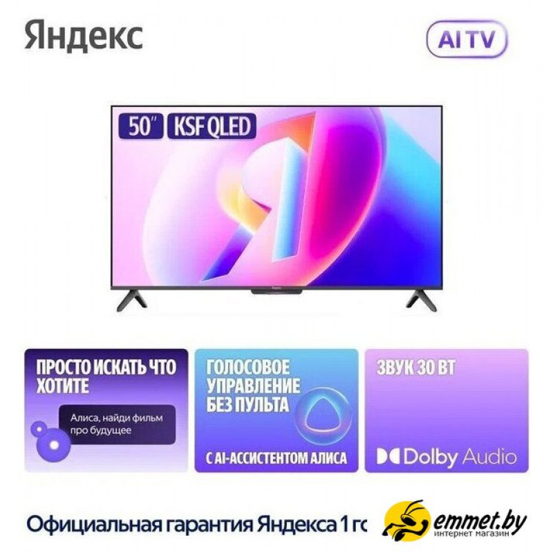 Телевизор Яндекс ТВ Станция Бейсик QLED с Алисой 50