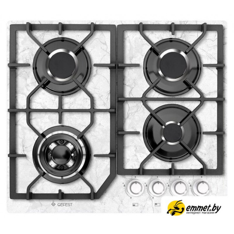 газовая на 4 конфорки, закаленное стекло, мощность: 7700 Вт, автоматический электроподжиг, газ-контроль, решетки: чугун, независимая установка, размеры (ШхГ): 60x52.5 см